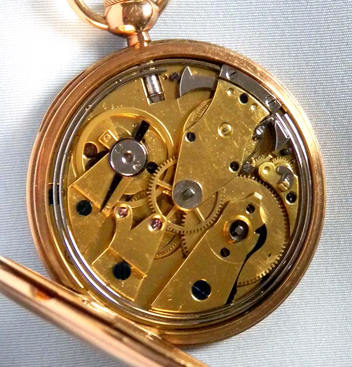 Fine and rare genuine Breguet slim 18K gold ruby cylinder quarter repeater antique pocket watch circa 1833. Fine silver engine turned Breguet dial with gold Breguet hands, Slim engine turned case with piston in the pendant that is withdrawn, turned, and depressed to activate the repeater. Fine gilt movement, loud and clear tone. In particularly fine condition throughout,