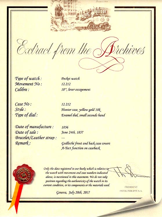 Fine and extremely rare Patek Philippe 18K gold montre å tact antique pocket watch with certificate circa 1865. The cover with a moving hand and the band with hour markers enabling time to be determined by touch. Fine white enamel dial. Dust cover with the name of the Berlin retailer and a hole to mesh with the outer hand. Fine gilt lever movement with wolf tooth winding.