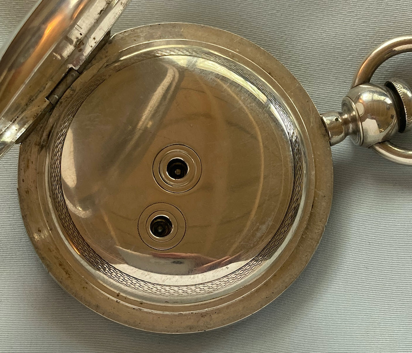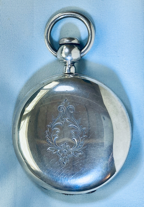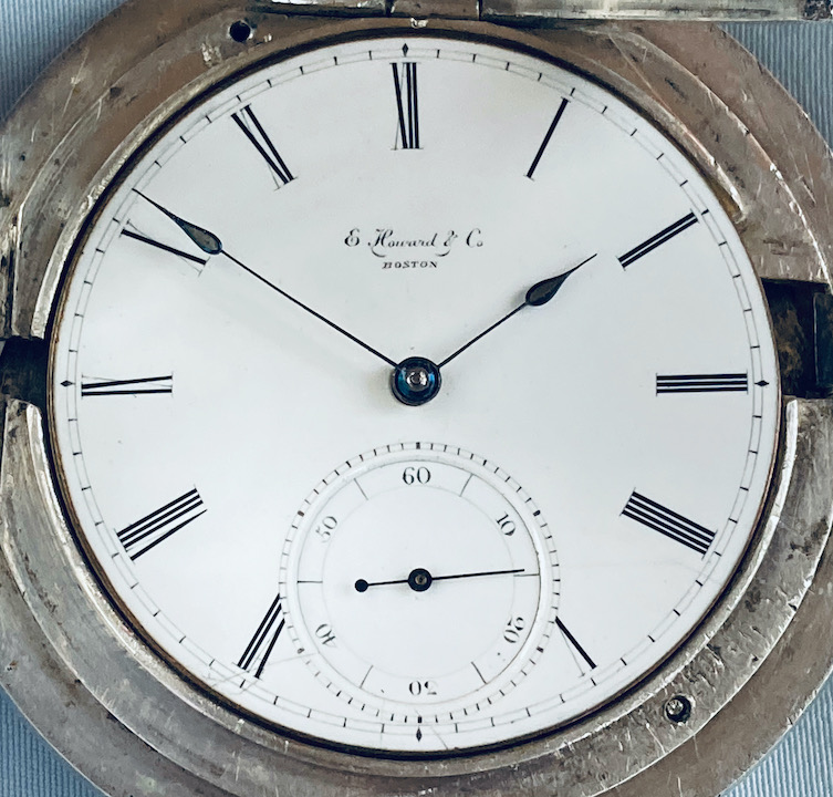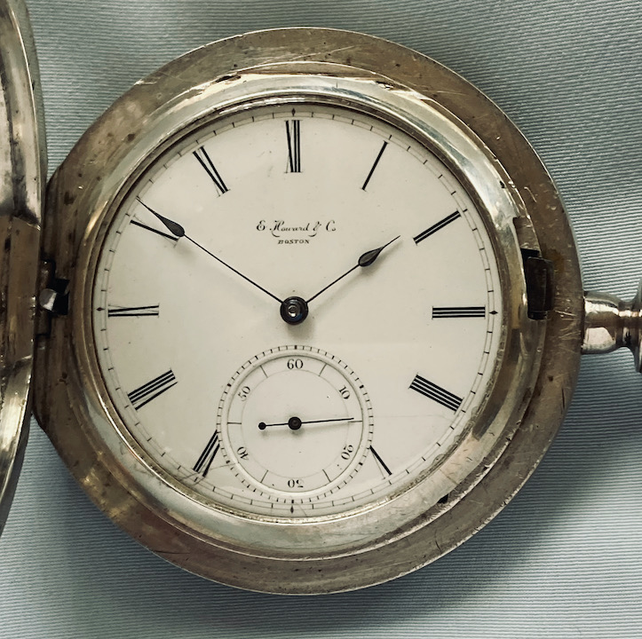 Fine Howard Series II recased silver antique pocket watch circa 1861. Handsome gilt 15 jewel movement. White enamel dial (a few hairlines) with blued steel hands. Massive silver case.